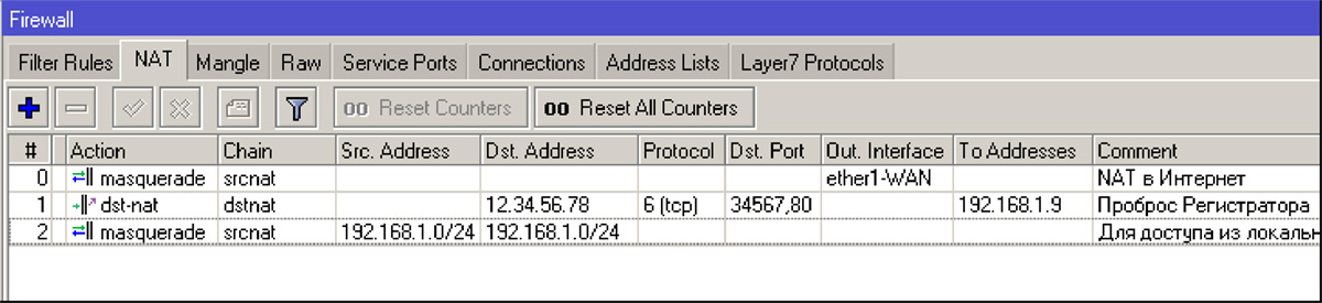 Также правило необходимо будет вписать дополнительное правило для всех подсетей в пределах этого маршрутизатора, откуда потребуется доступ к регистратору по внешнему IP.